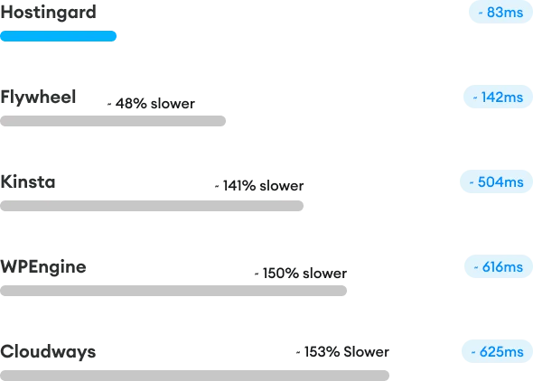These are actual TTFB speed results (averaged) on our customer WordPress websites prior to migrating to Hostingard.